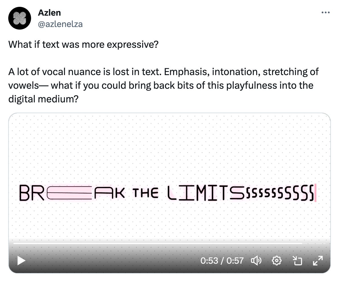 Whenever I try to write down my idea or thinking process it becomes quite obvious that a) it doesn't make too much sense b) I need to work more on it c) it sounds like bullshit. So I will then iterate on the idea until it has at least some sound logic. And then also make sure that it has the necessary aesthetics that I value. If you want to think better, start writing down your thought process and ideas. In this context, text plays a critical role — it’s the extended medium for thinking. And it’s worth looking at how thinking is going to change.
